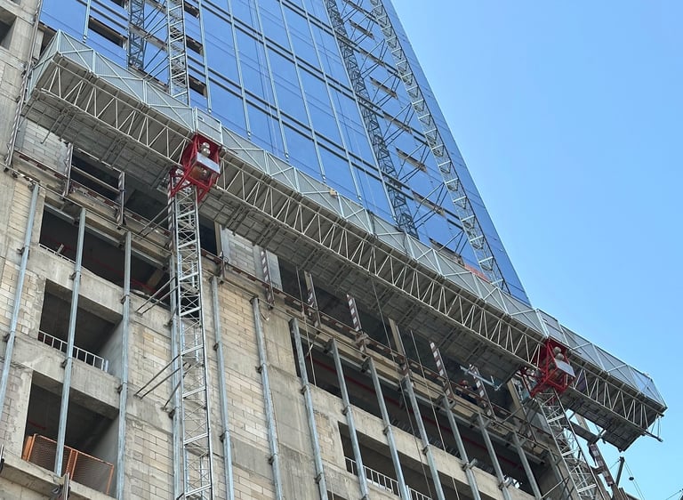 We provide advanced vertical access solutions for the global market. Our flagship Mast Climbing Work Platforms (MCWP) are engineered to replace traditional scaffolding and hanging gondolas. Featuring an all-steel structure and driven by a robust rack-and-pinion mechanism, this system delivers the stability and heavy-duty capacity required for modern high-rise construction.